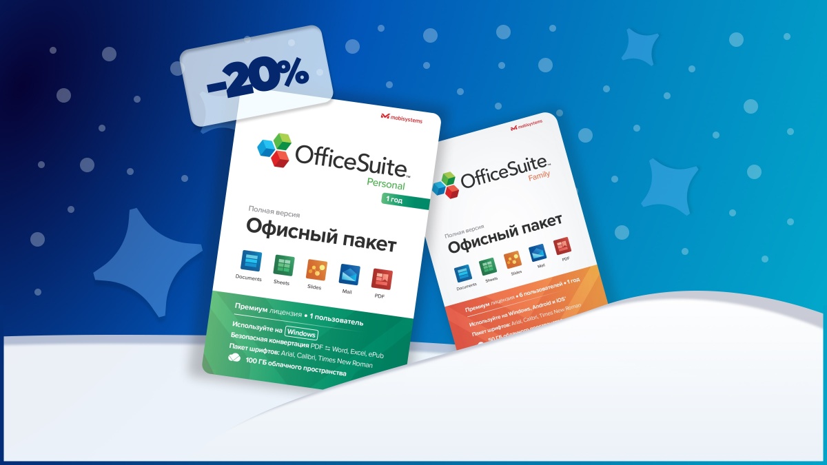 Начните 2026 год продуктивно! В период новогодних праздников получите скидку 20% на OfficeSuite по промокоду OFFICE20.